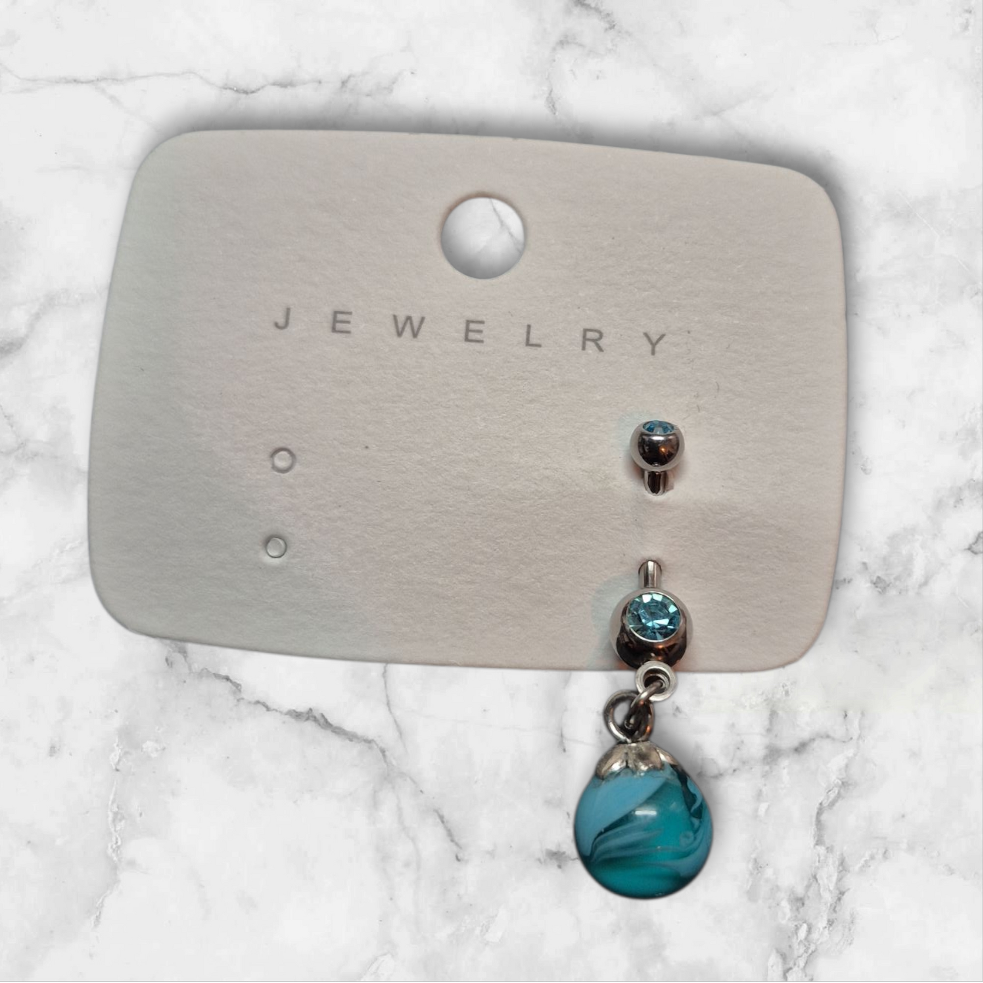 Piercing mit blauen Glitzersteinen und einer blau und türkis durchsichtigen Perle