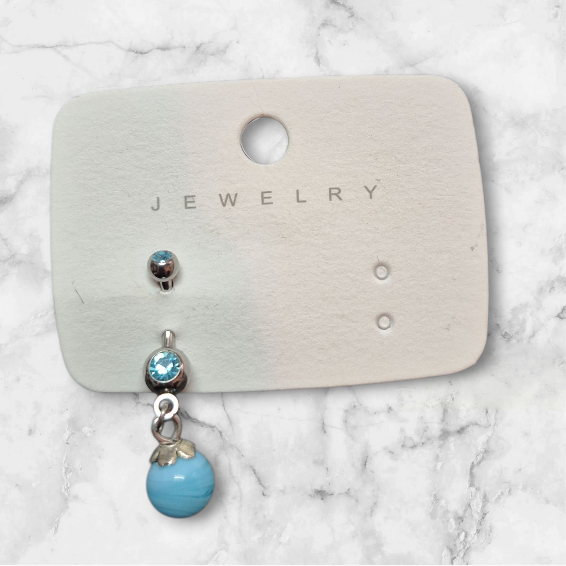 Piercing mit blauen Glitzerstein und hellblauer Perle