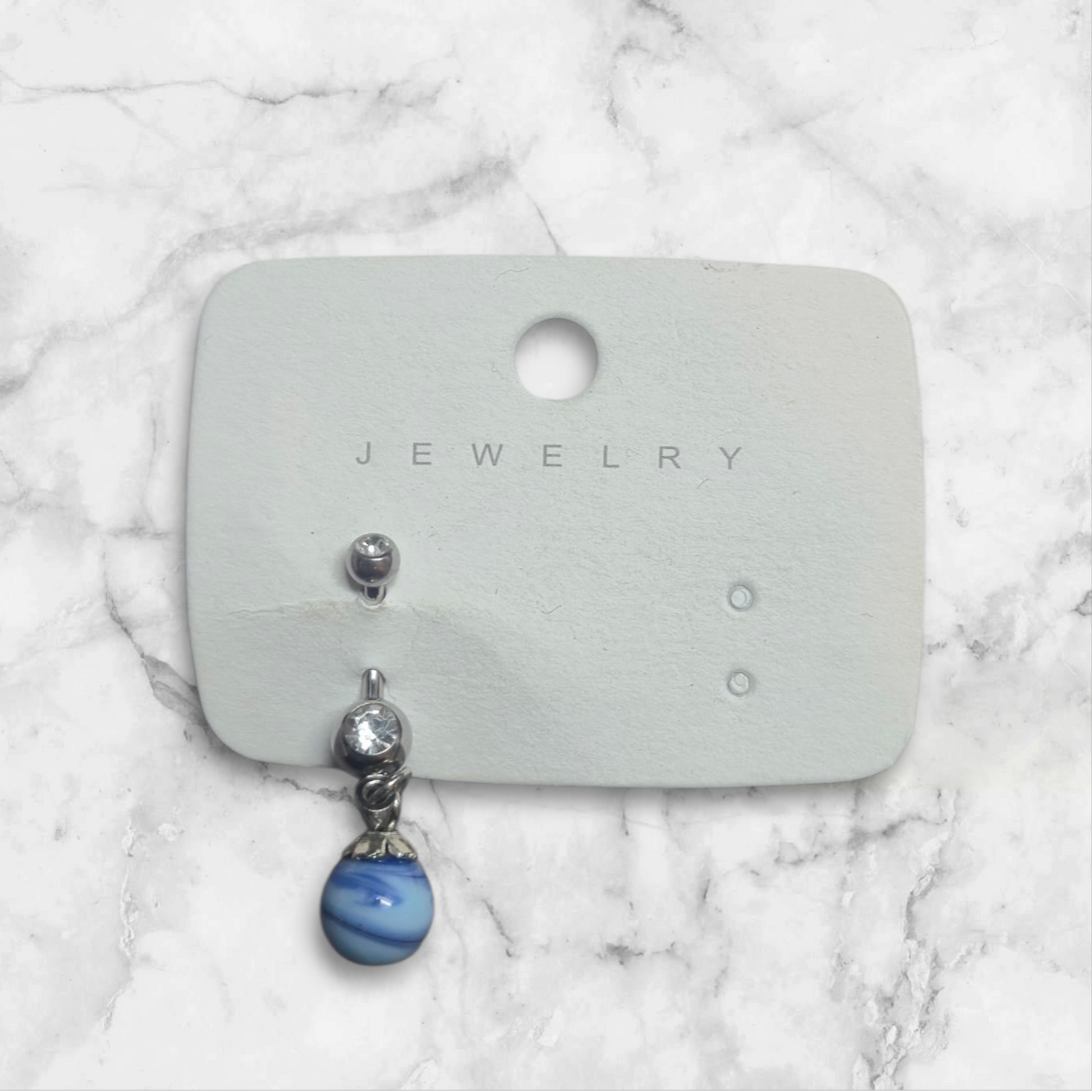 Piercing mit glitzerstein und hell und dunkelblauer Perle