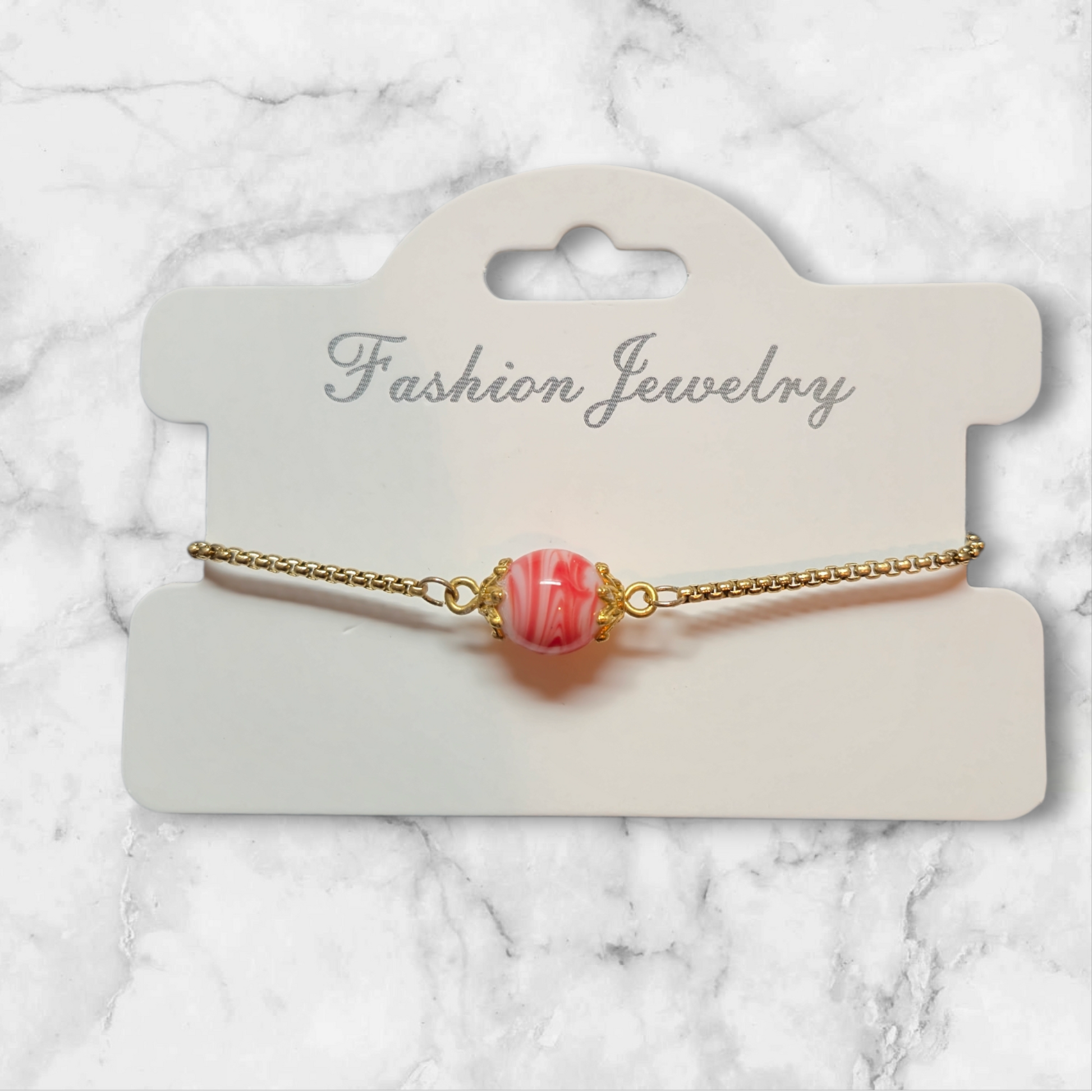 Armband mit rot weiß gemusterter Glasperle