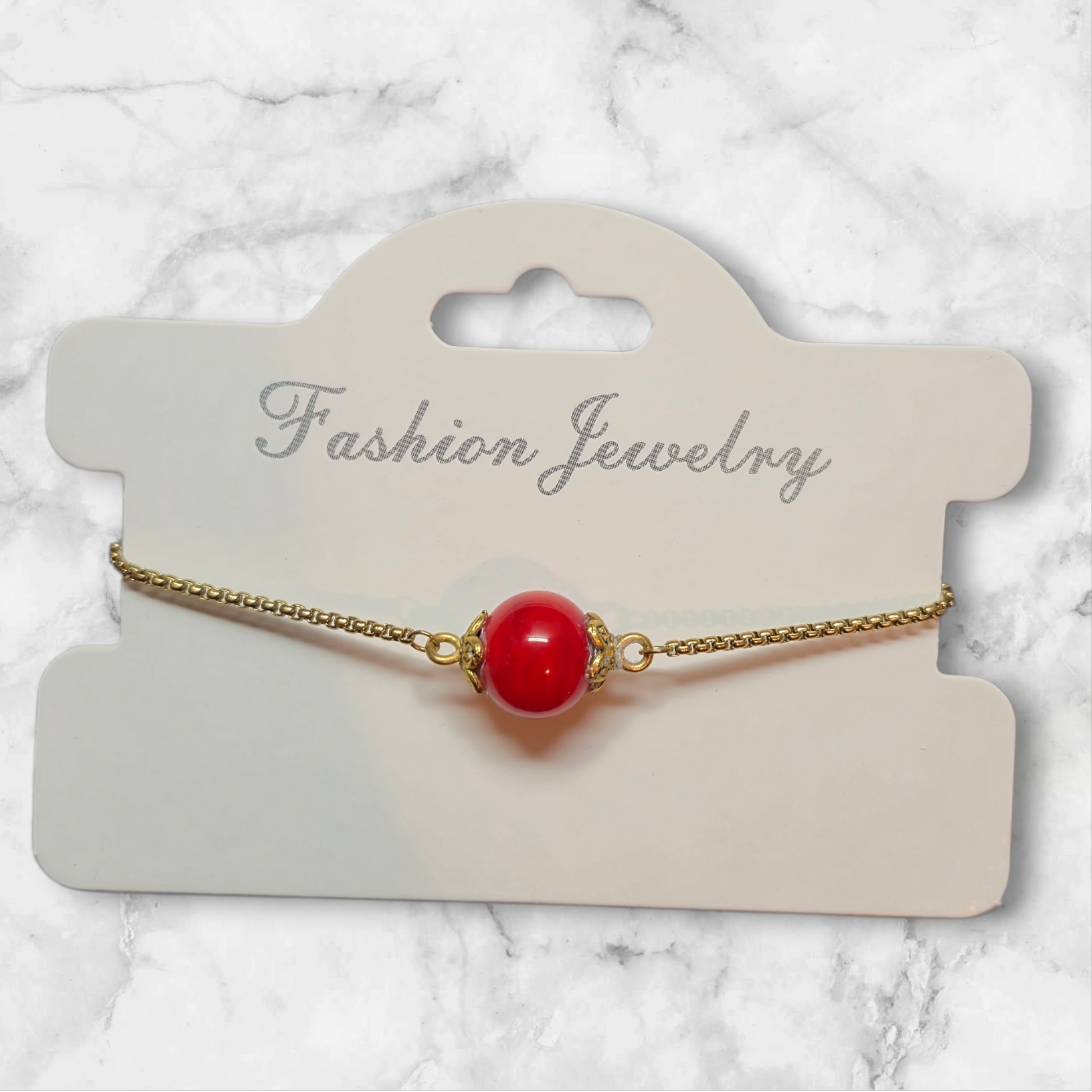 Armband mit roter und rot transparenten Glasperle