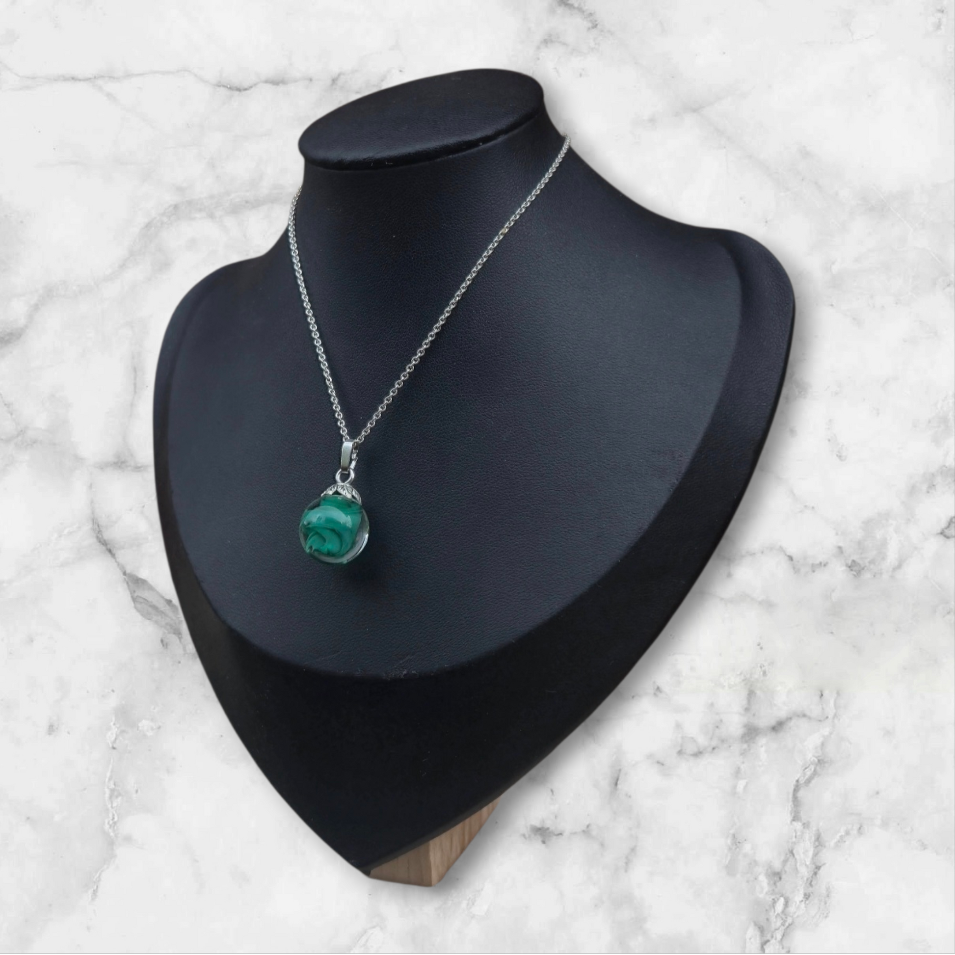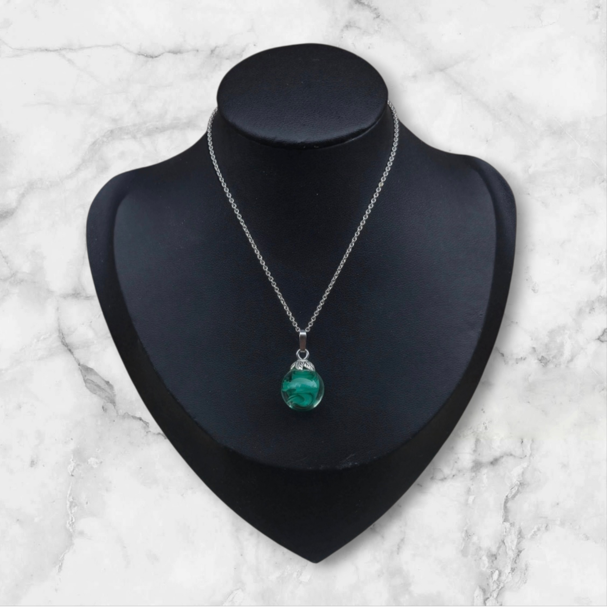 Dunkelgrüner Perlenanhänger mit transparentem Glas umzogen (ohne Kette)Ketten gibt es unter dem Punkt Zubehör