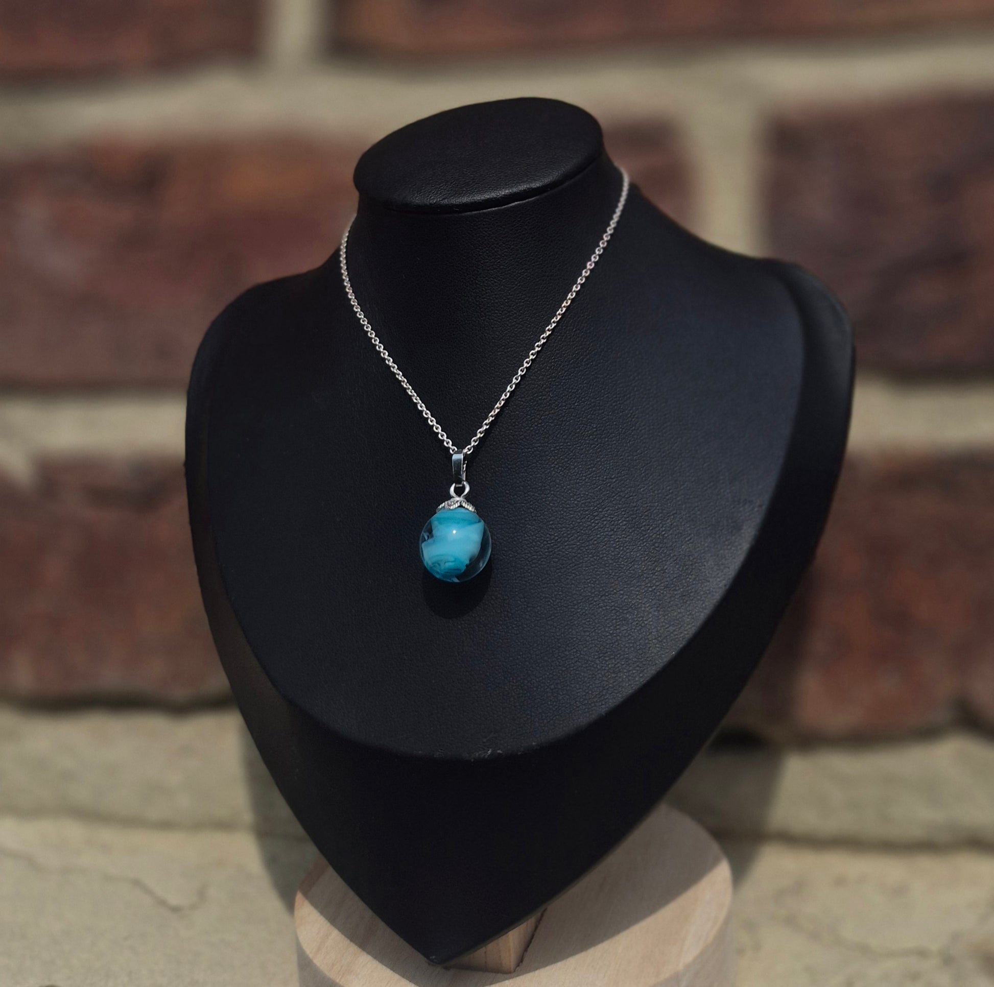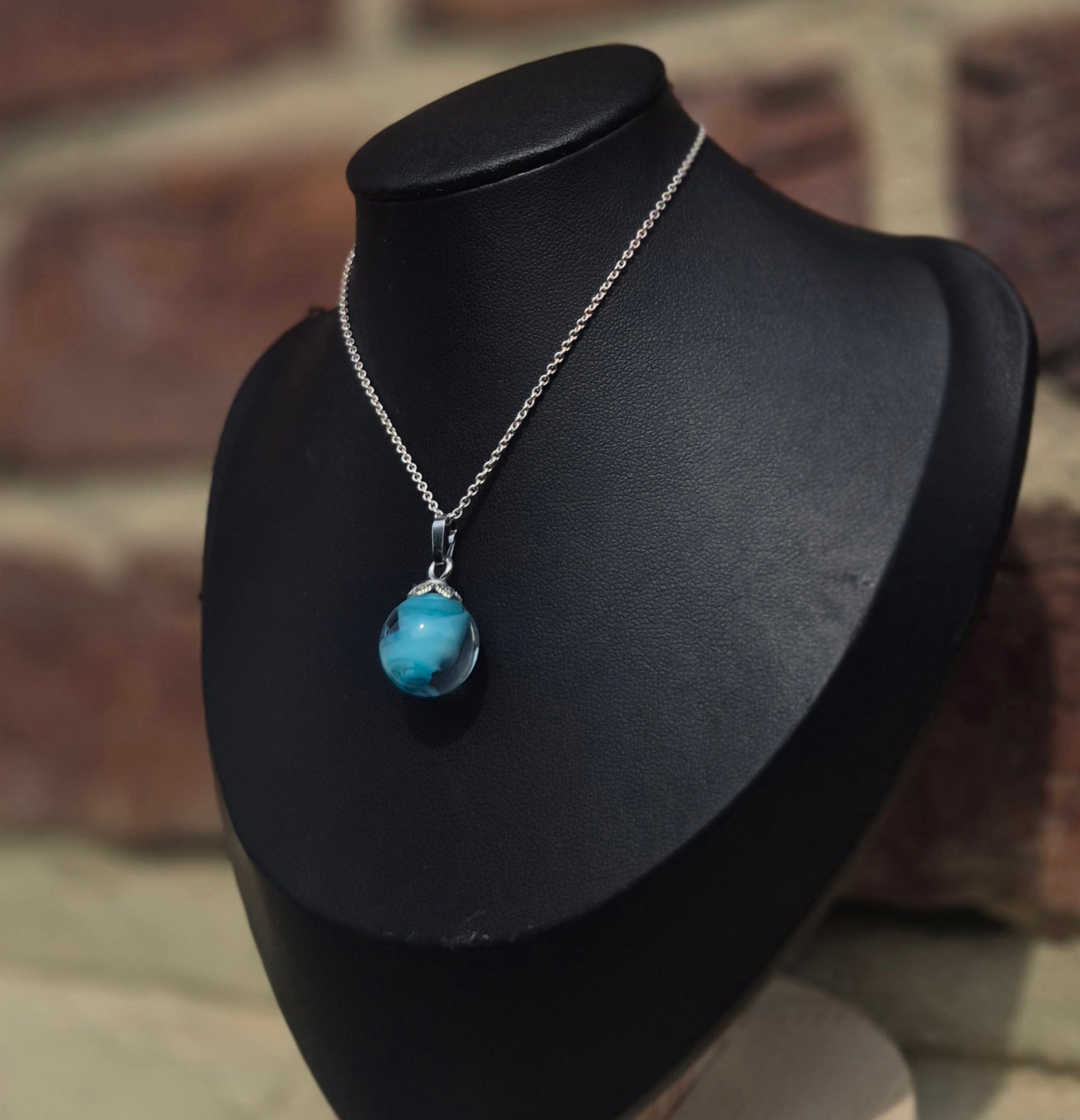 Hellblauer Kugelanhänger mit durchsichtigem Glas umwickelt (ohne Kette). Ketten gibt es unter dem Punkt Zubehör