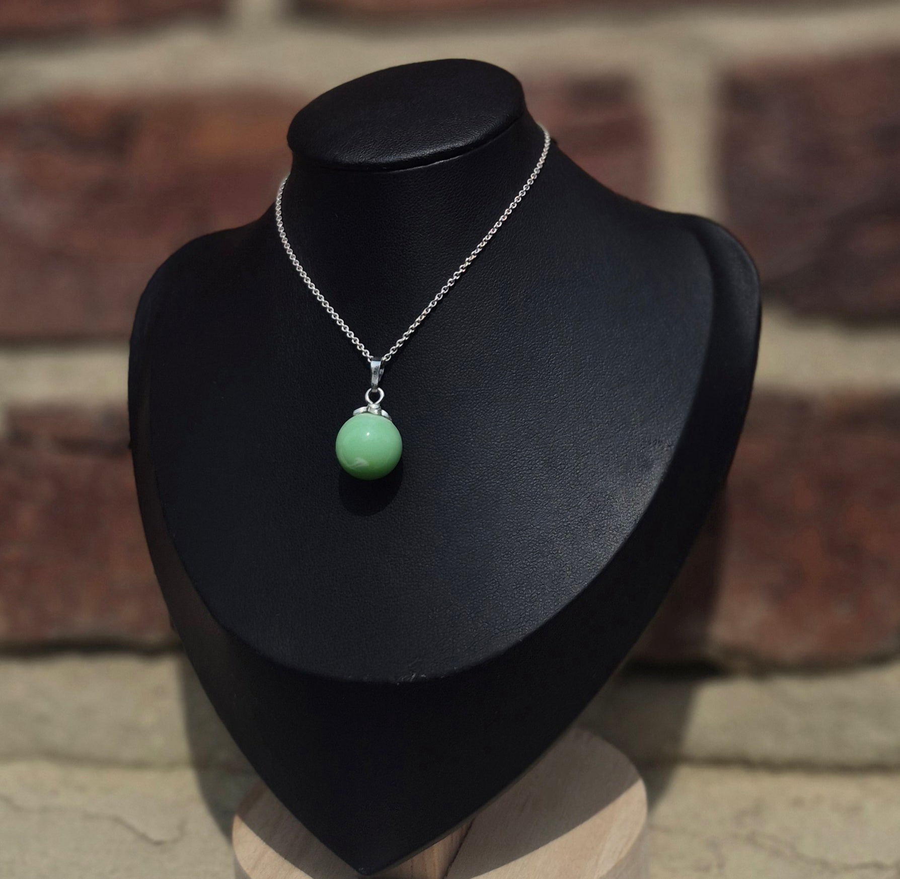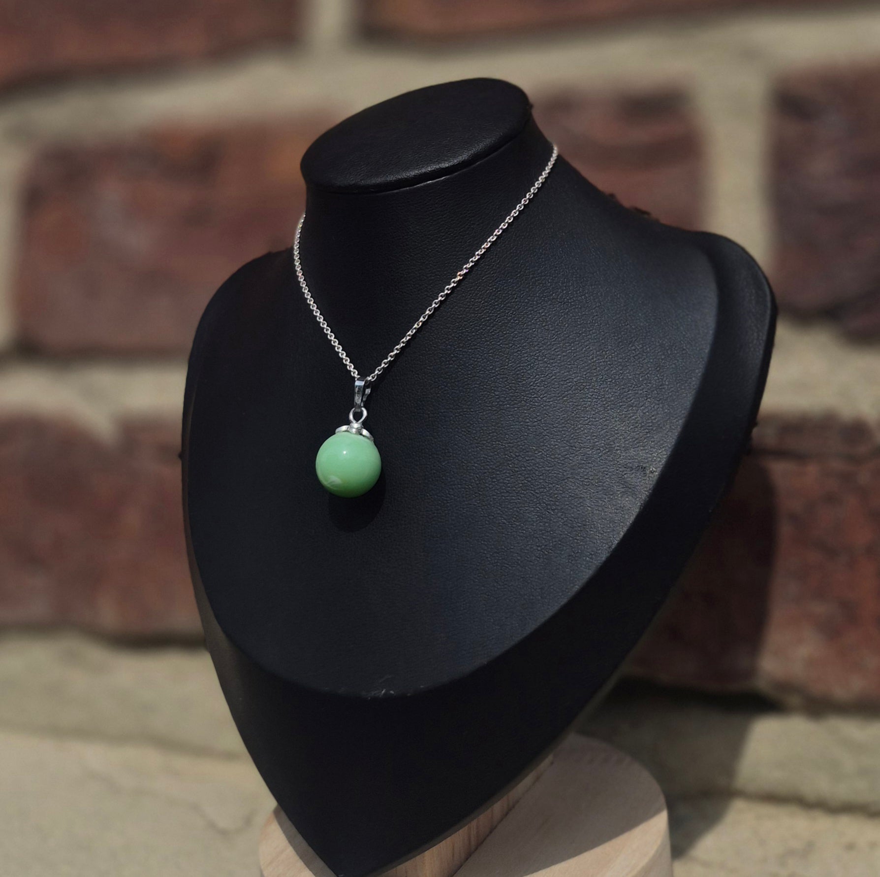 Grüner Anhänger mit leichten weißen Akzenten (ohne Kette). Ketten gibt es unter dem Punkt Zubehör