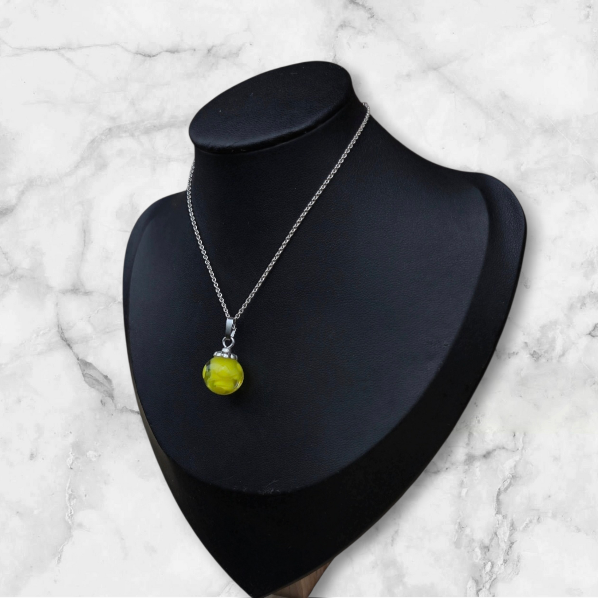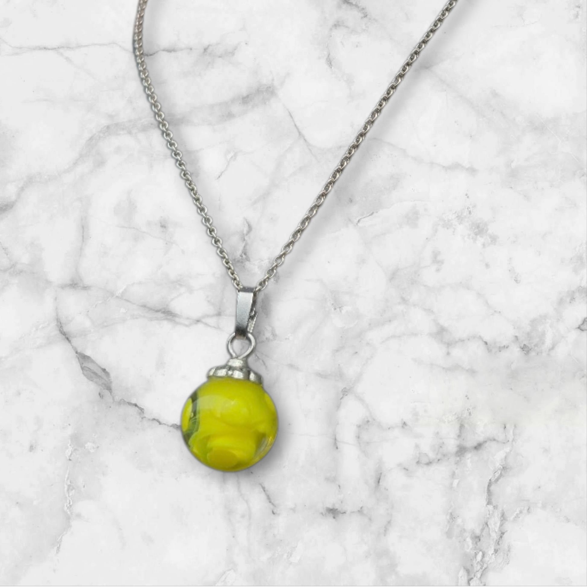Gelbe Perle mit transparentem Glas umzogen und mit gelben Punkten (ohne Kette) Ketten gibt es unter dem Punkt Zubehör