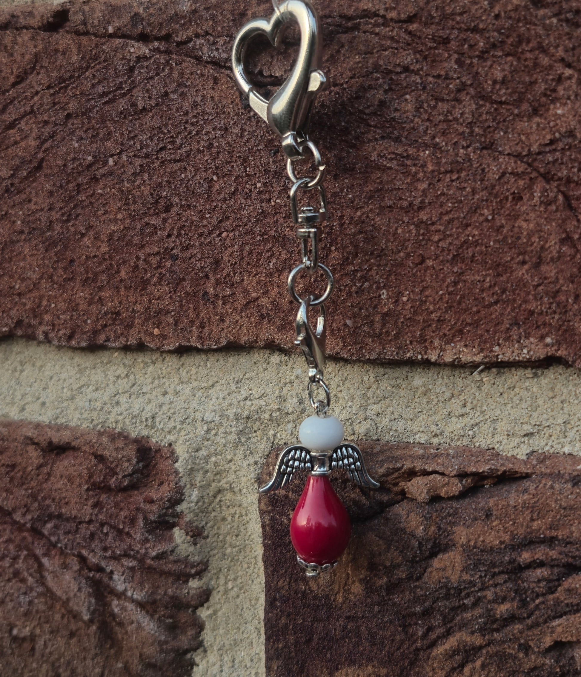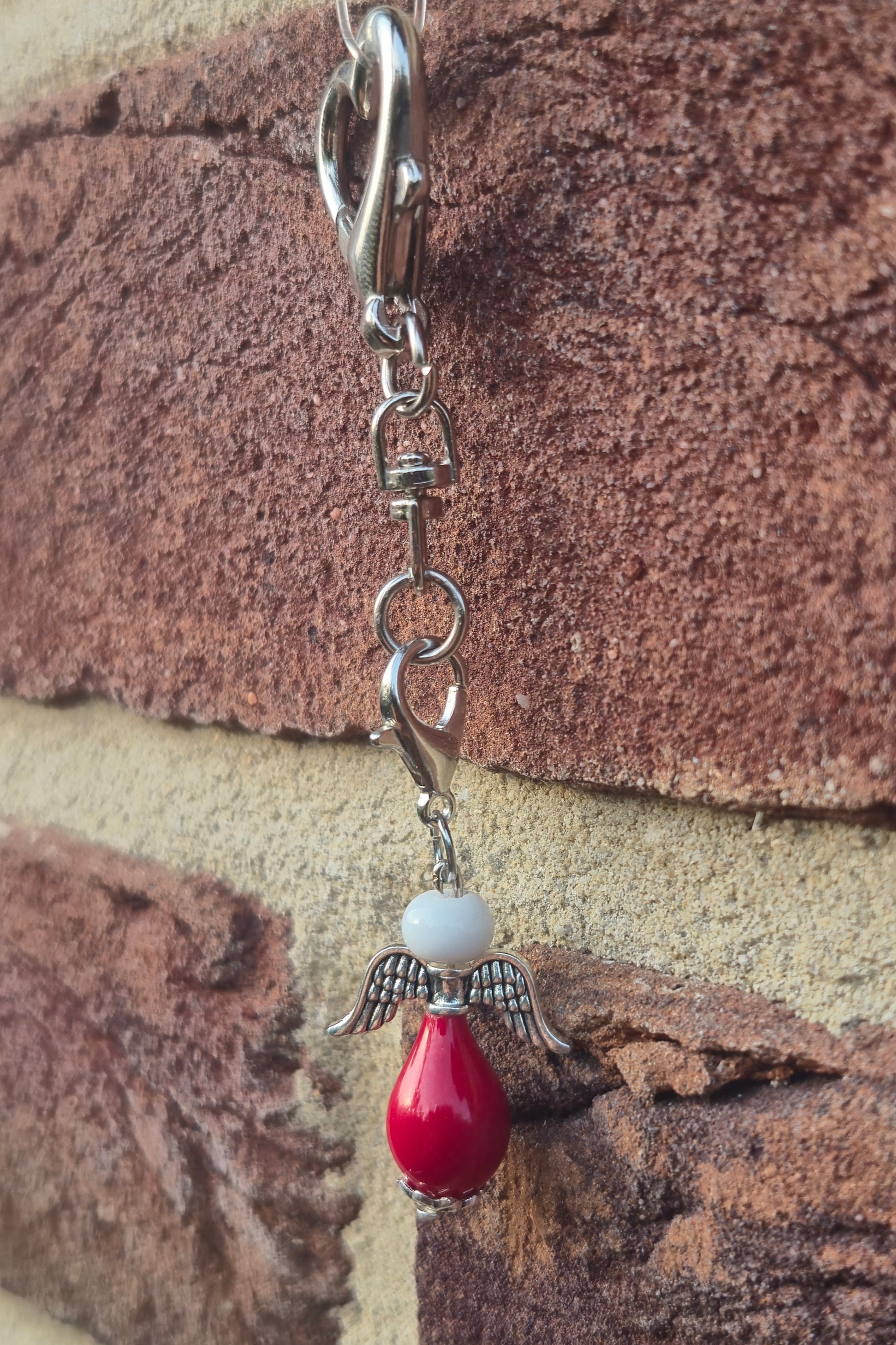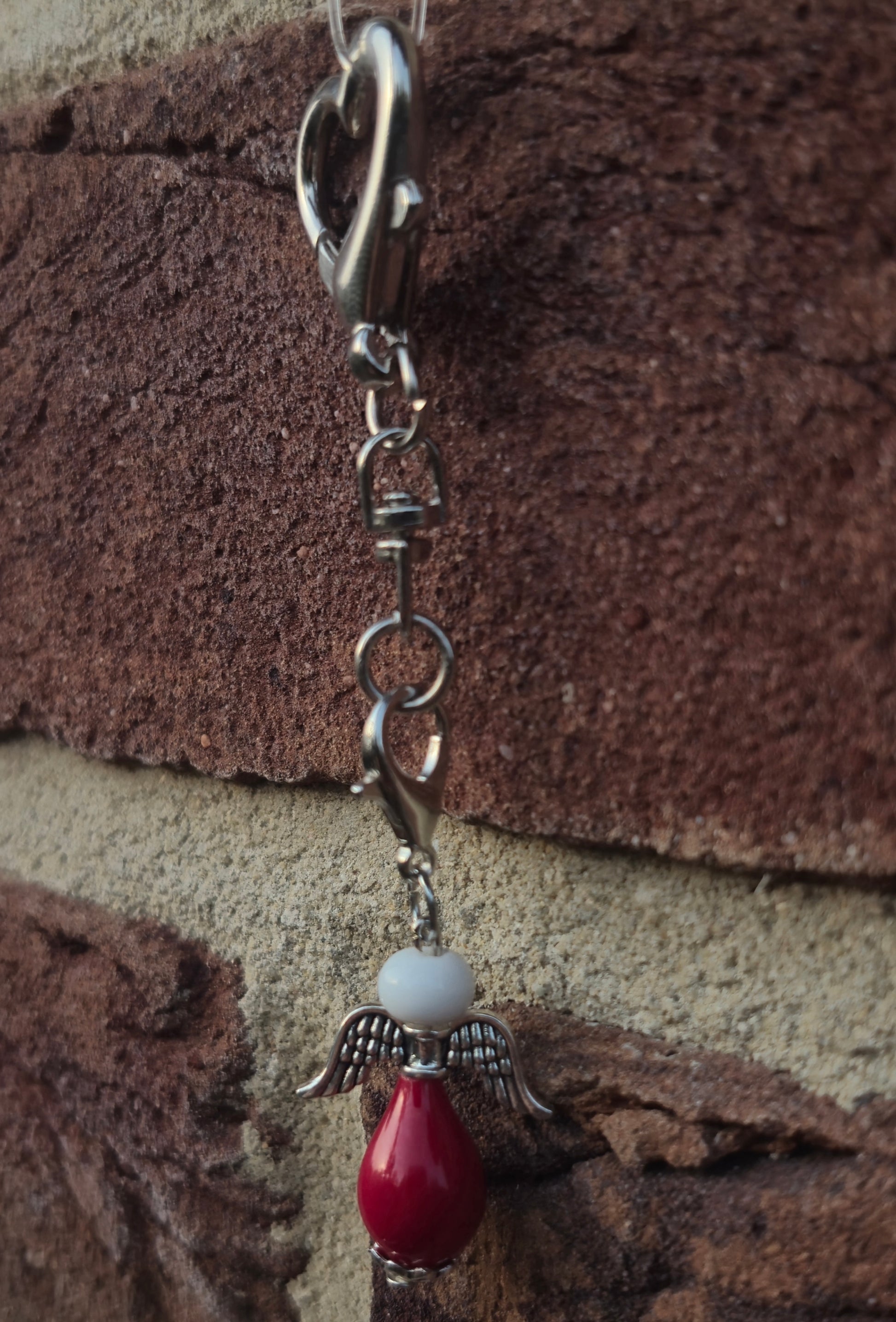 Rot und weißer Engel Taschen- und Schlüsselanhänger.(ohne den Herz Schlüsselanhänger)Also nur die Engel Perle. Der Herz Schlüsselanhänger findet man unter dem Punkt Zubehör.