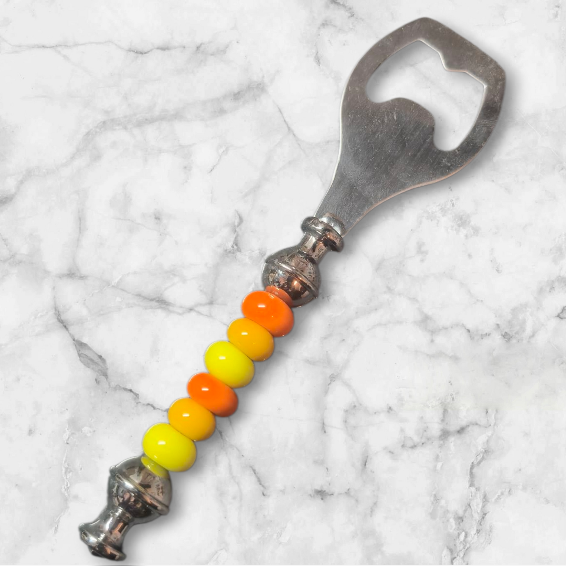 Flaschenöffner mit gelben und orangenen Perlen