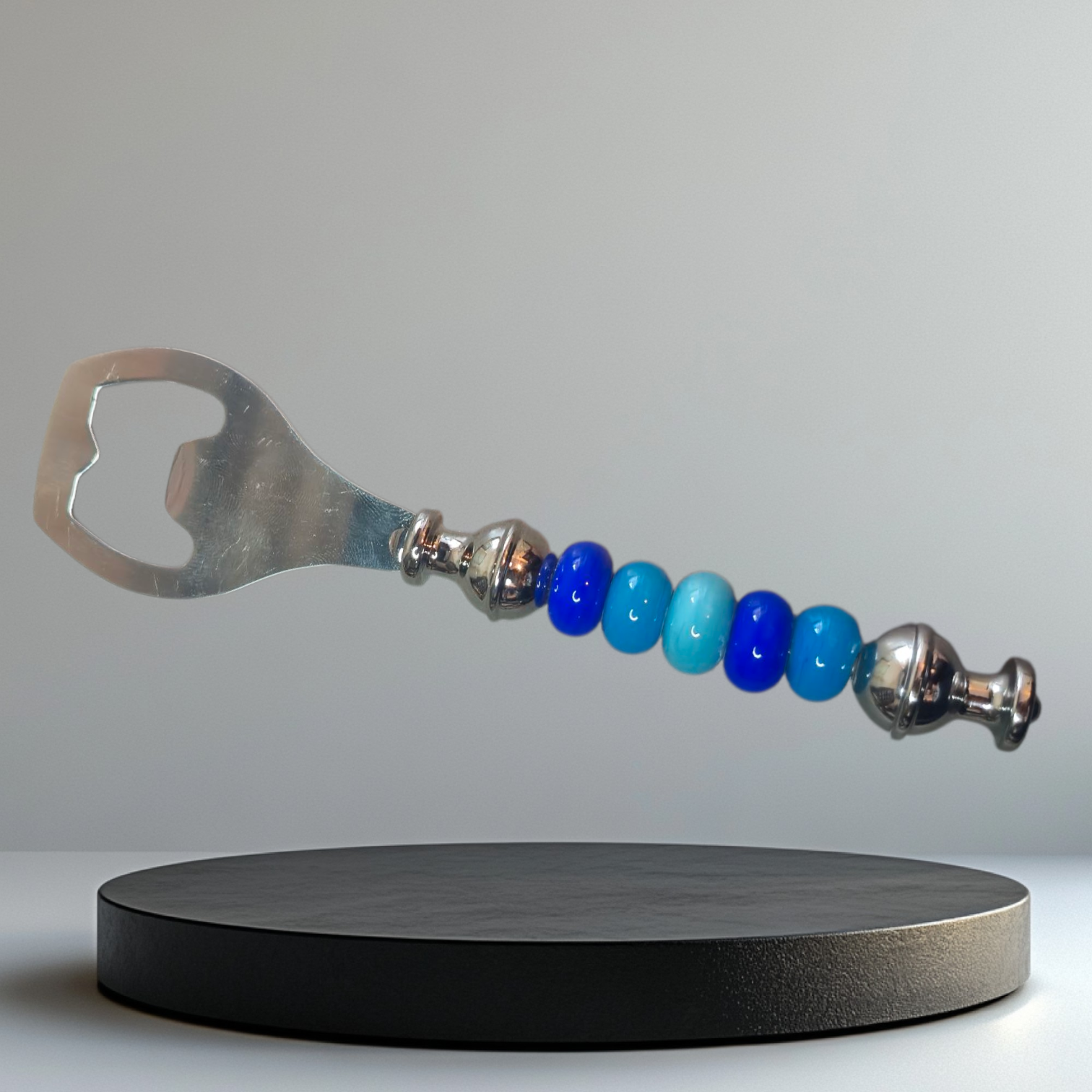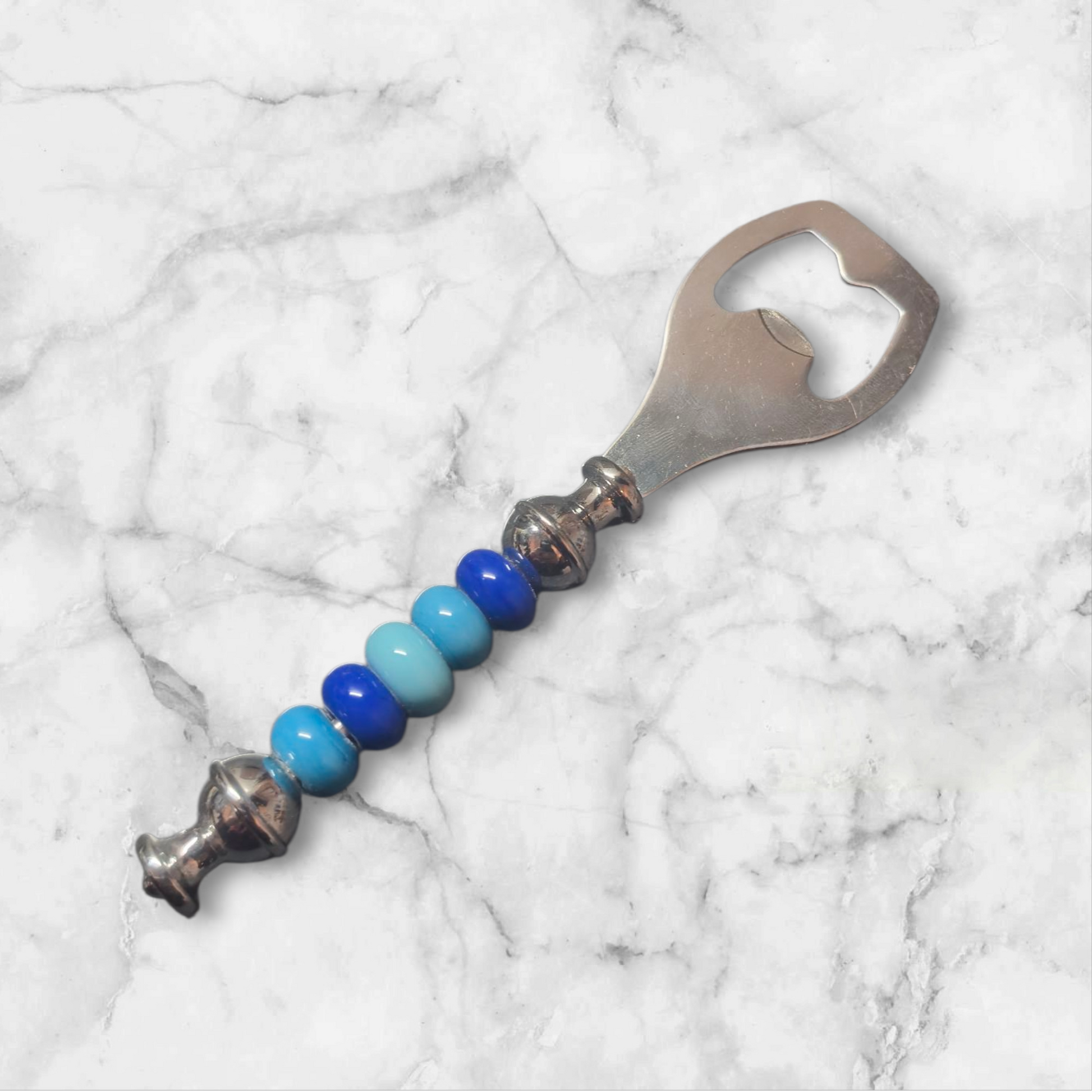 Flaschenöffner mit hell und dunkel blauen Glasperlen