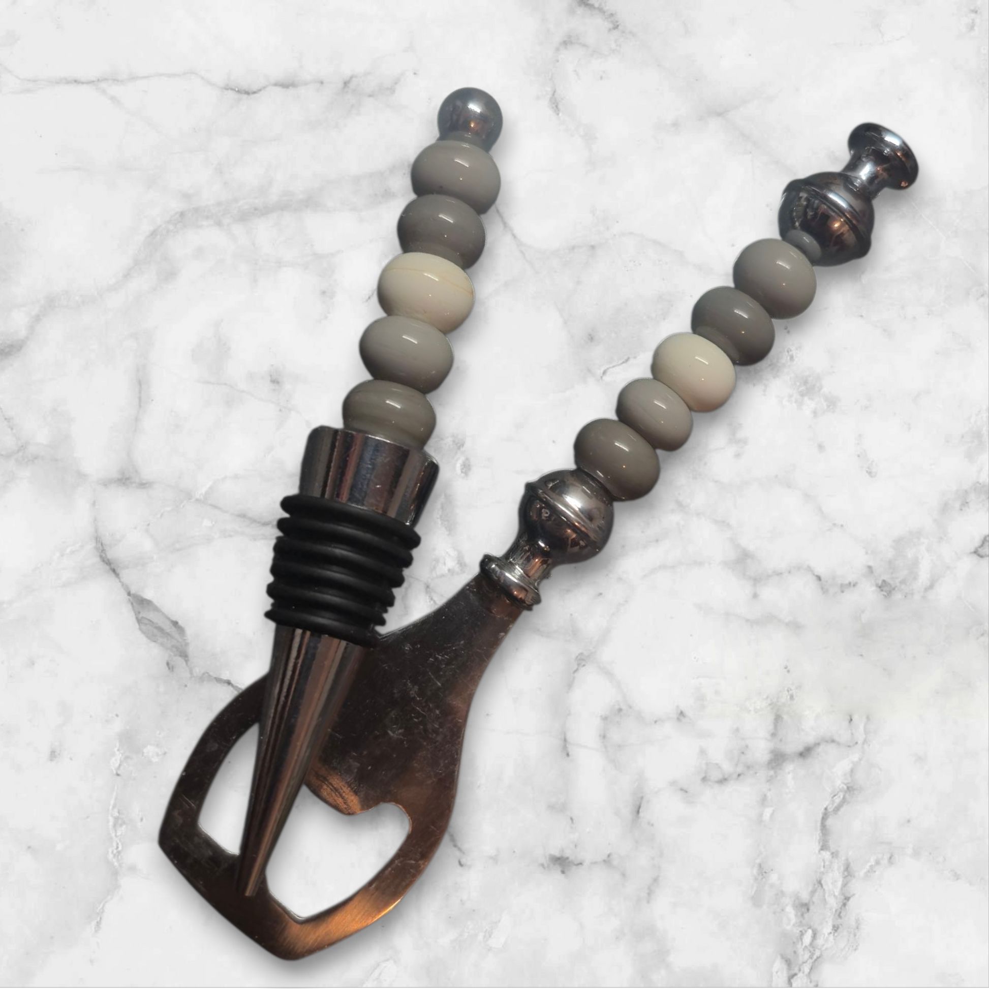 Set mit grauen und creme farbenden Perlen