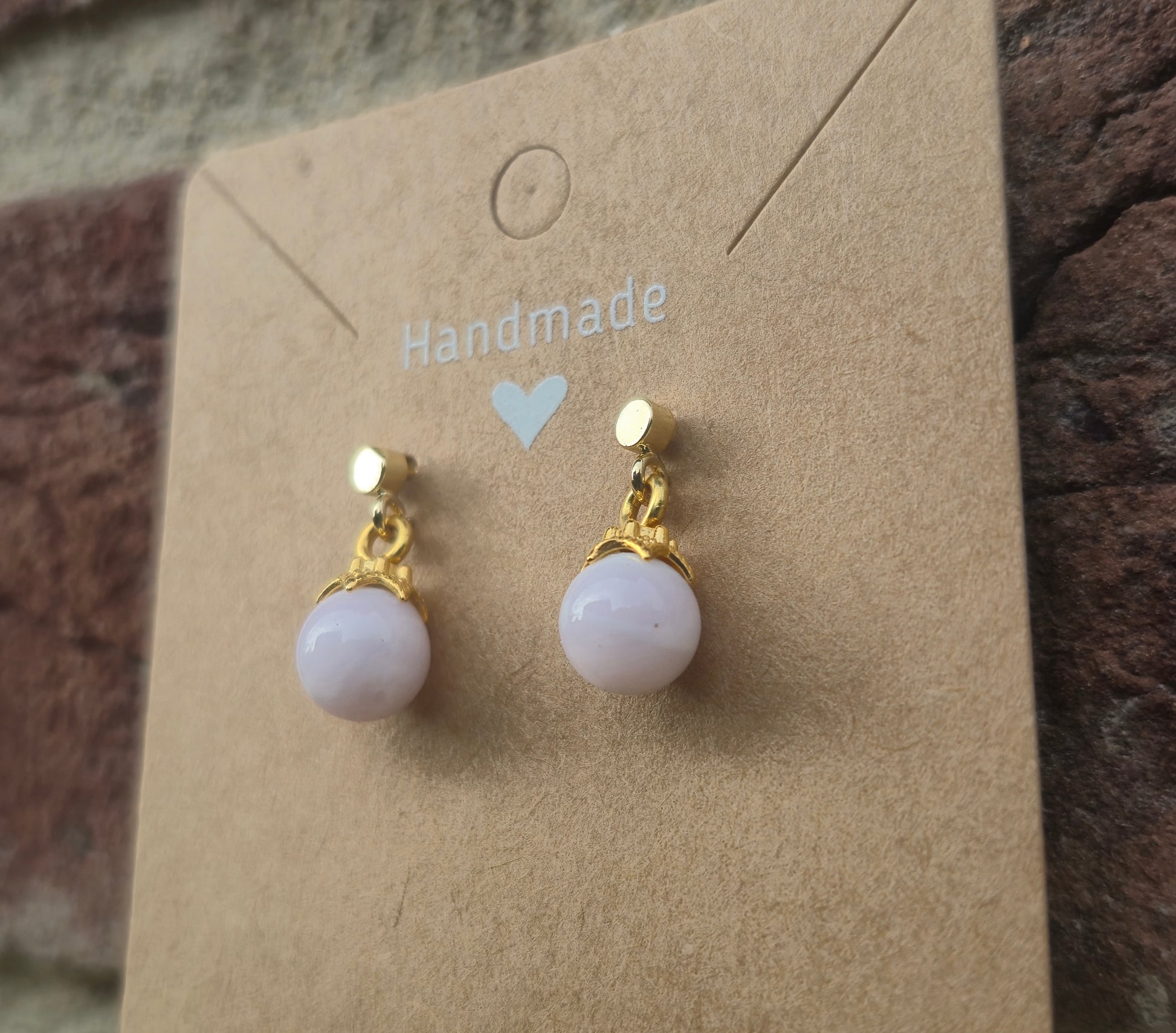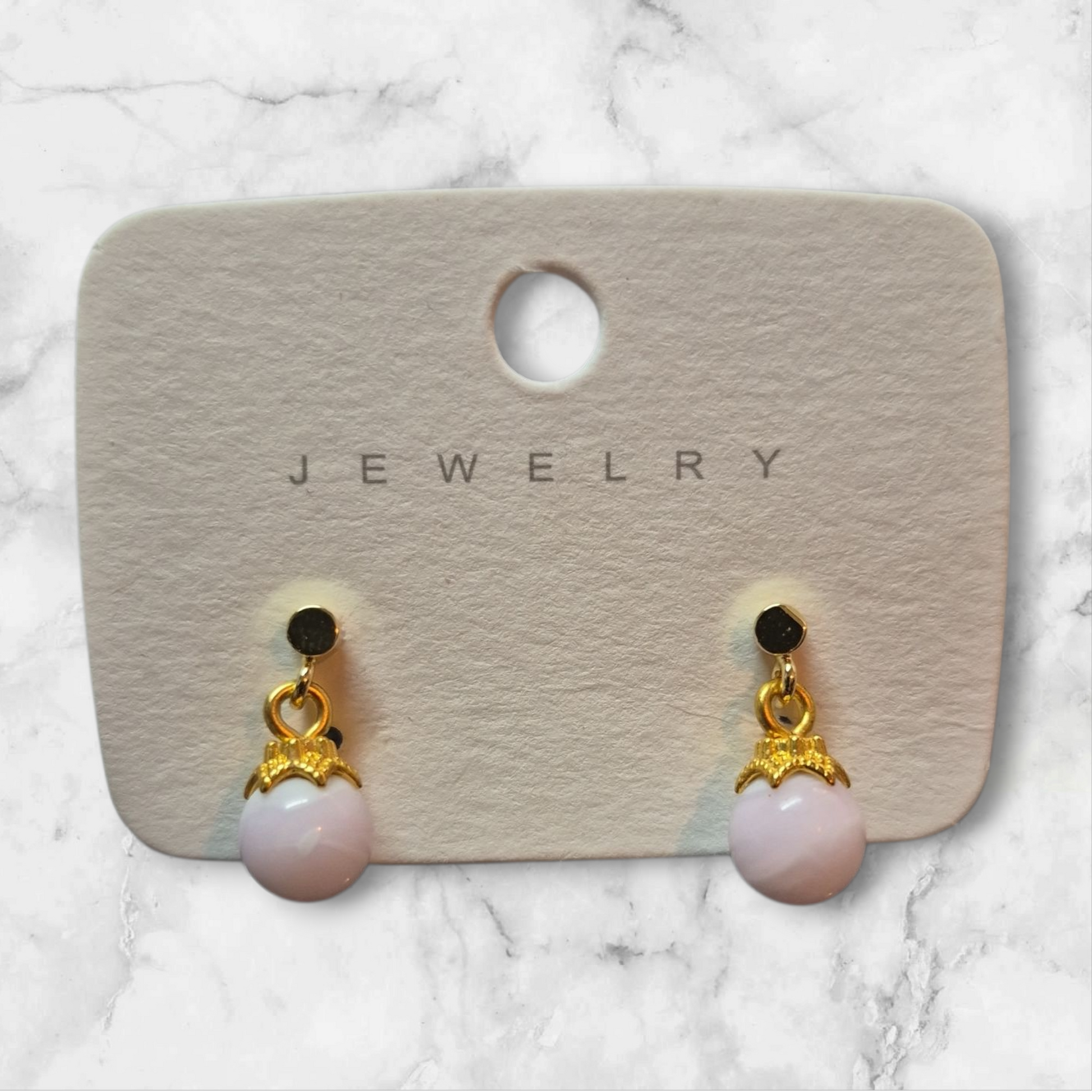 Rosa Weiße Perlen mit vergoldeten Ohrringen