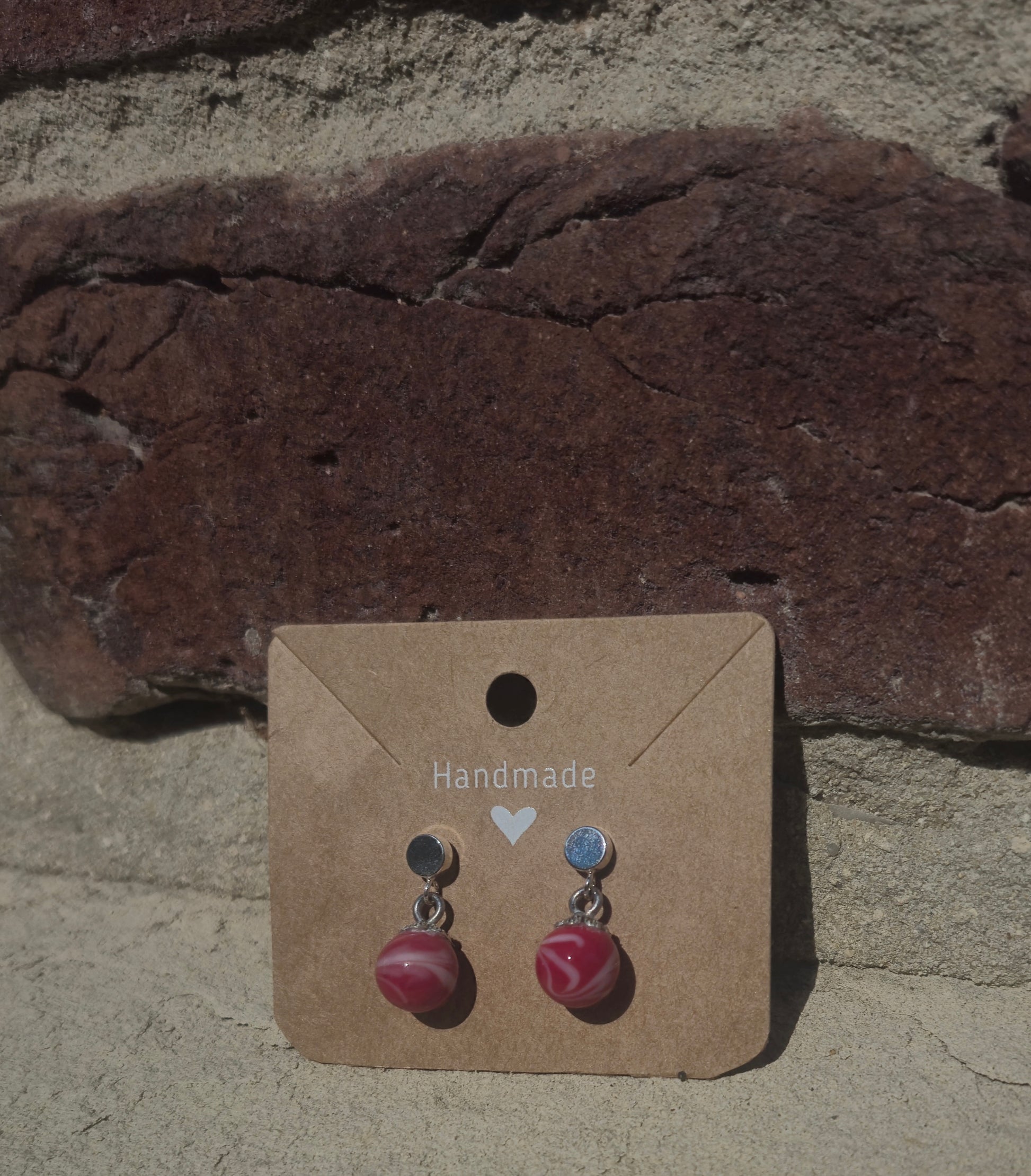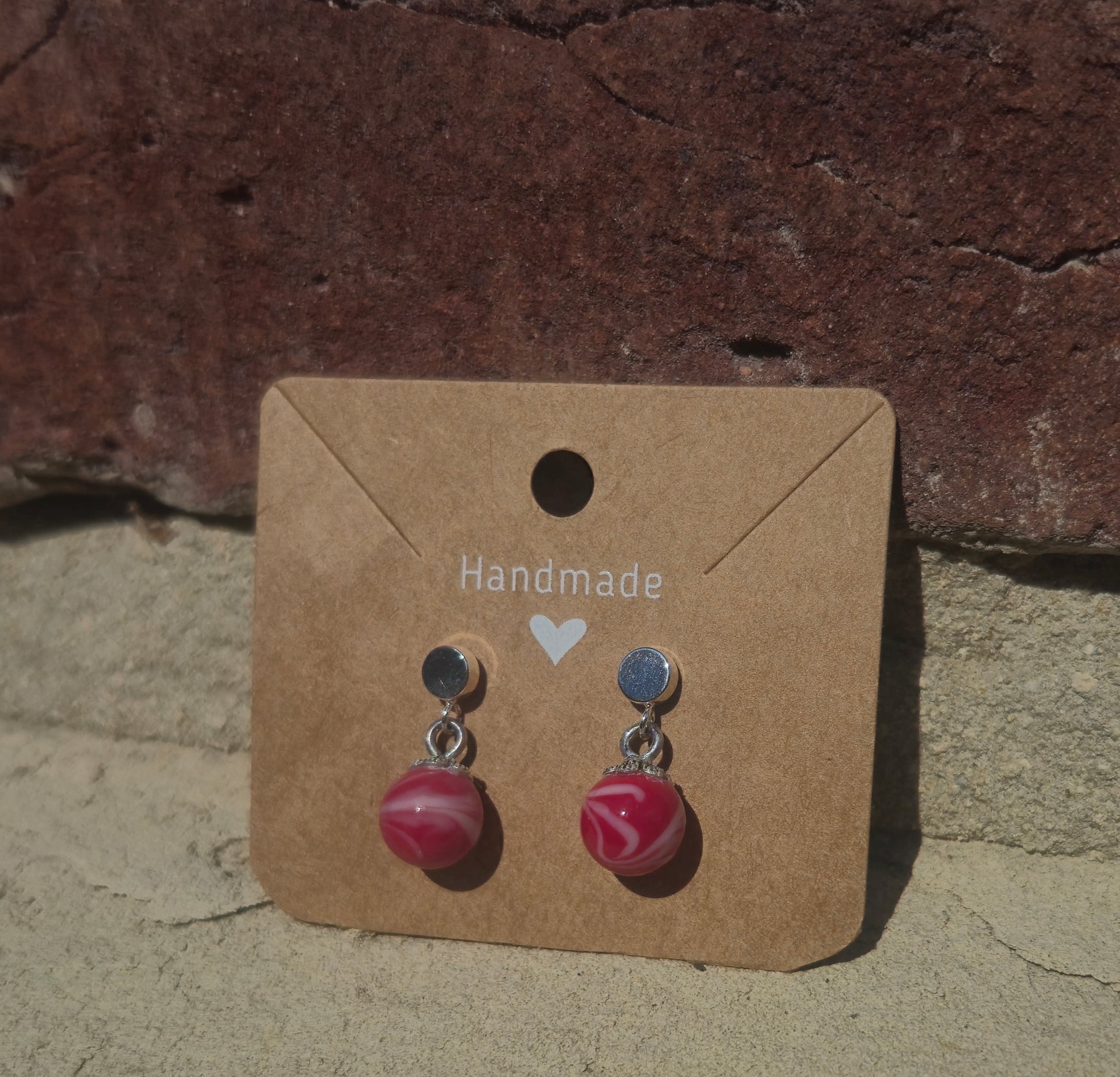 Große Hellrote Perlen mit weißen Akzenten und 925er Silber Steckern