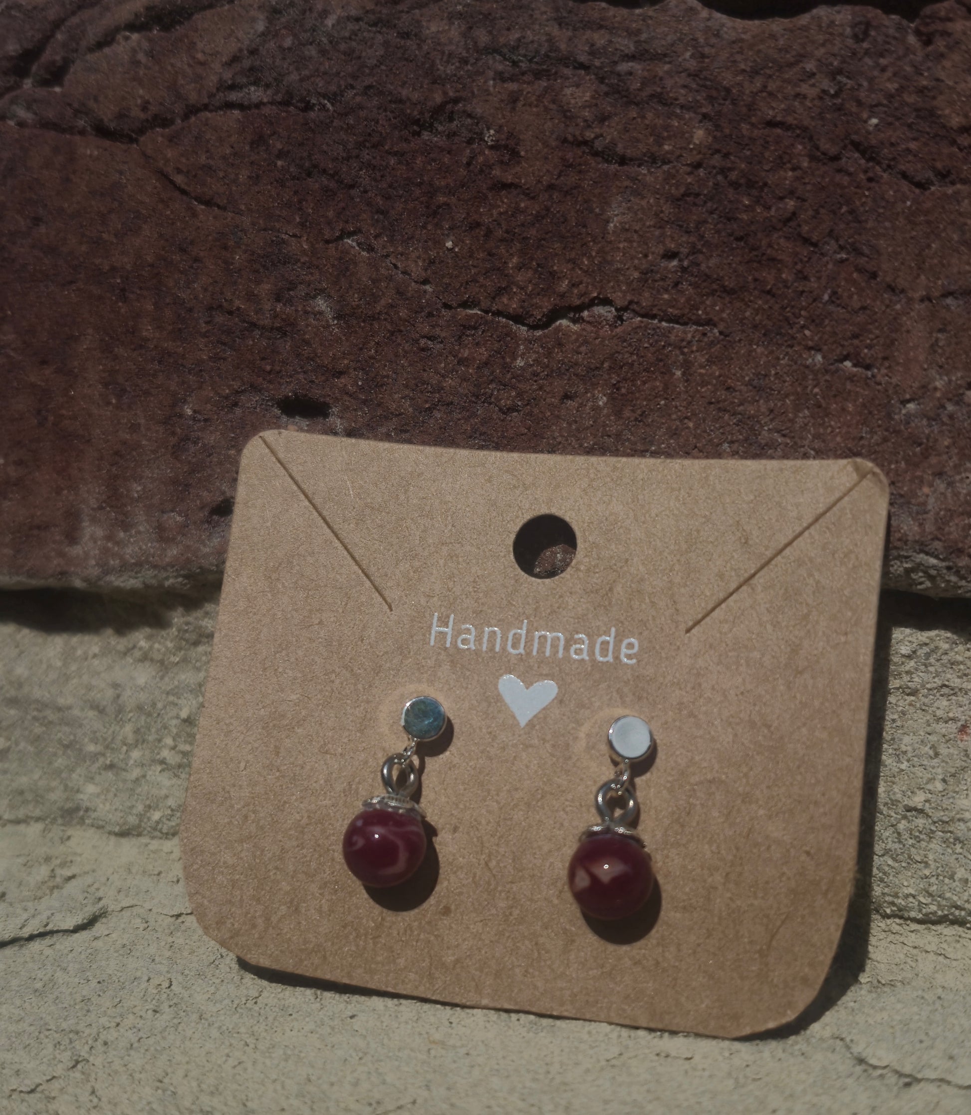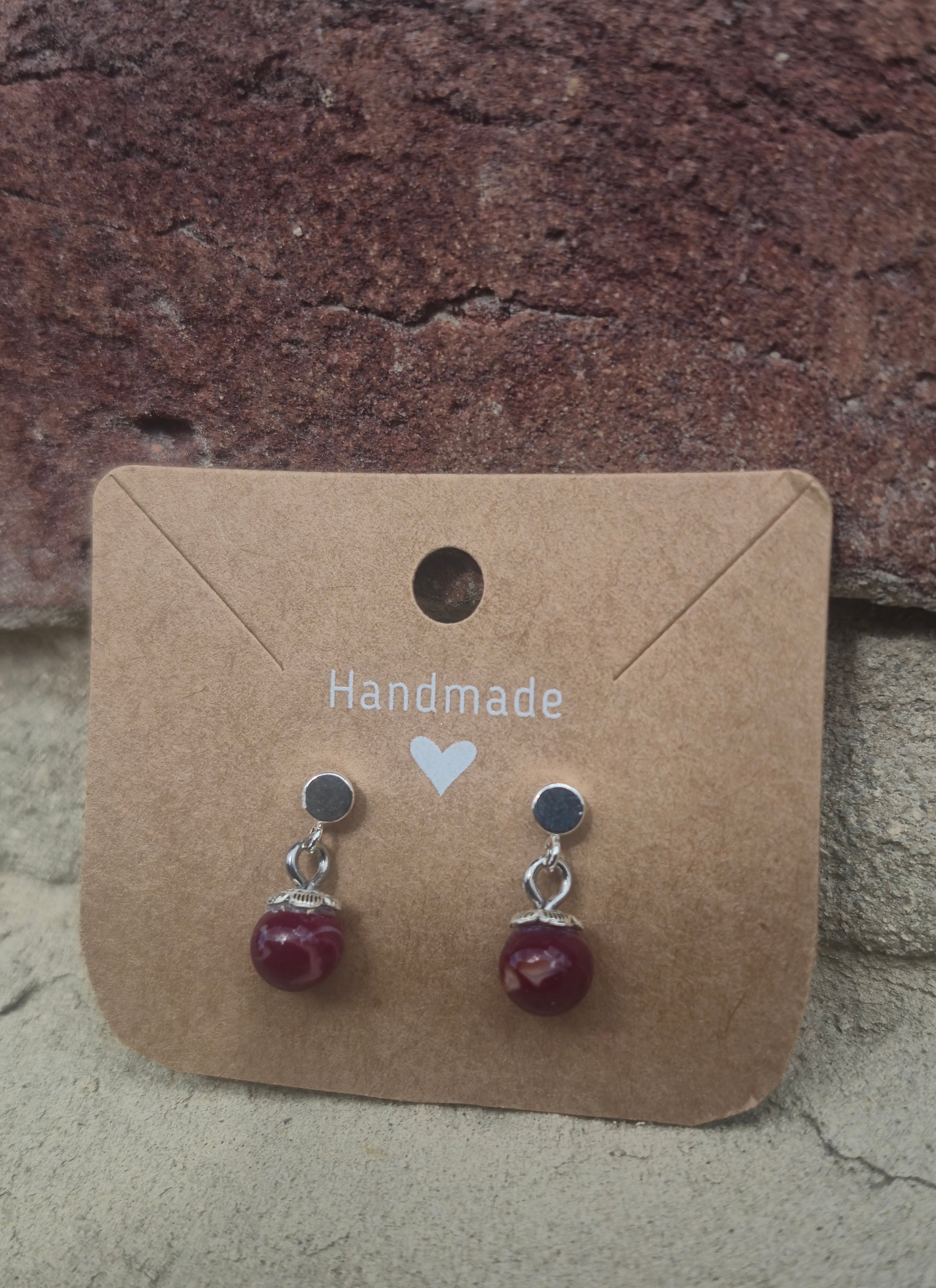 Kleine rote Perlen mit weißen Akzenten und 925er Silber Steckern