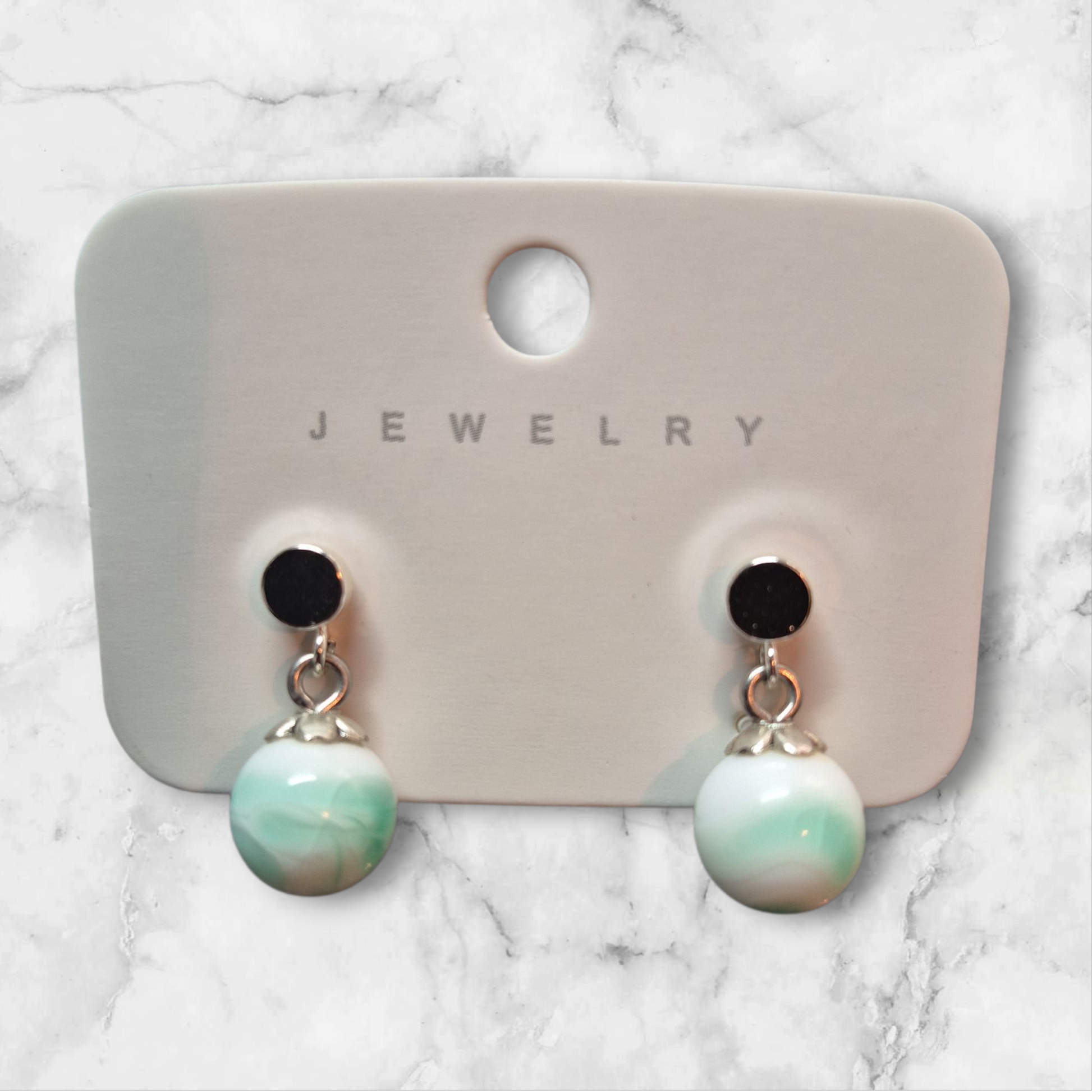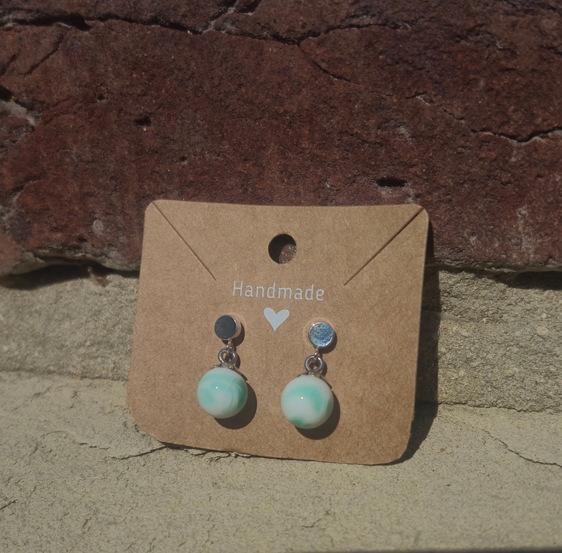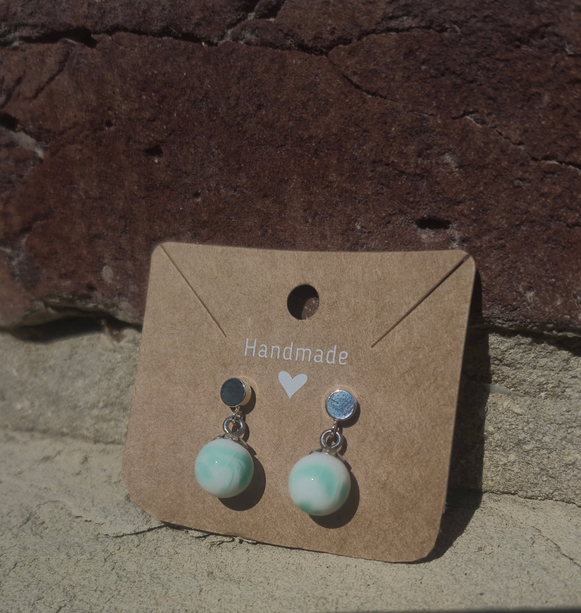 Weiß türkis grüne Ohrringe mit 925er Silbersteckern