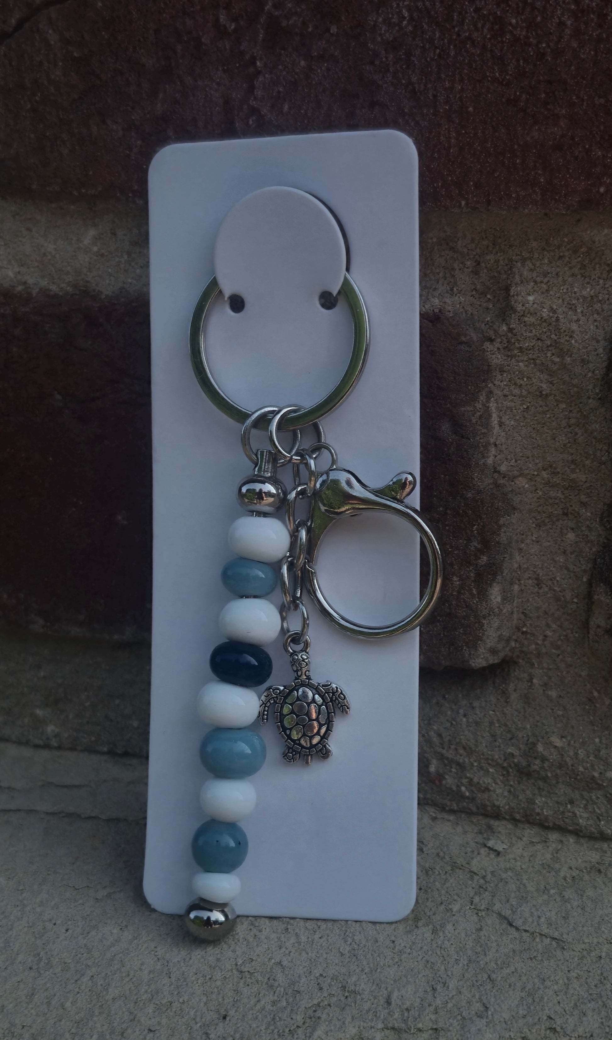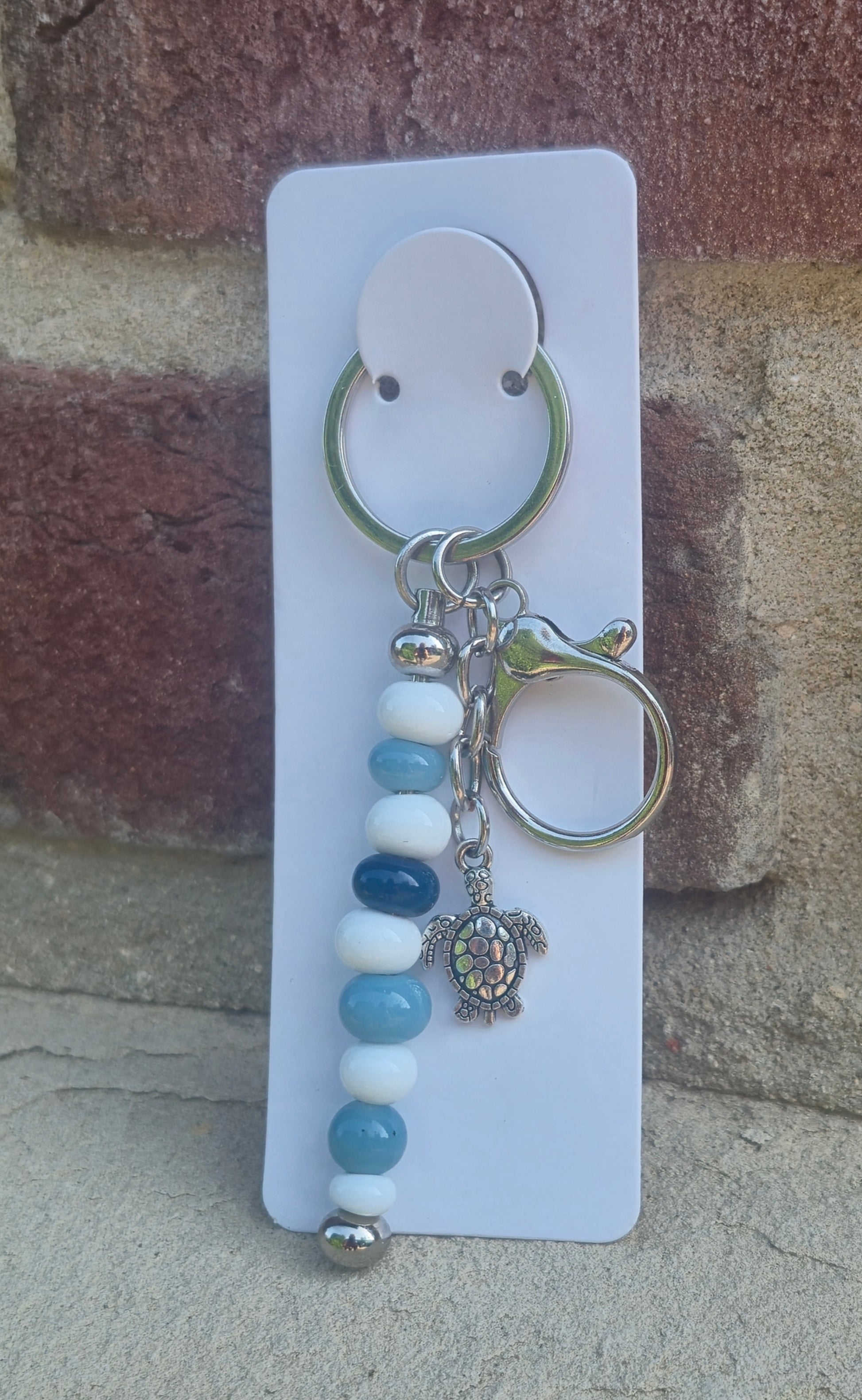 Blau weißer Stab Schlüsselanhänger mit Schildkröten Charm und Haken