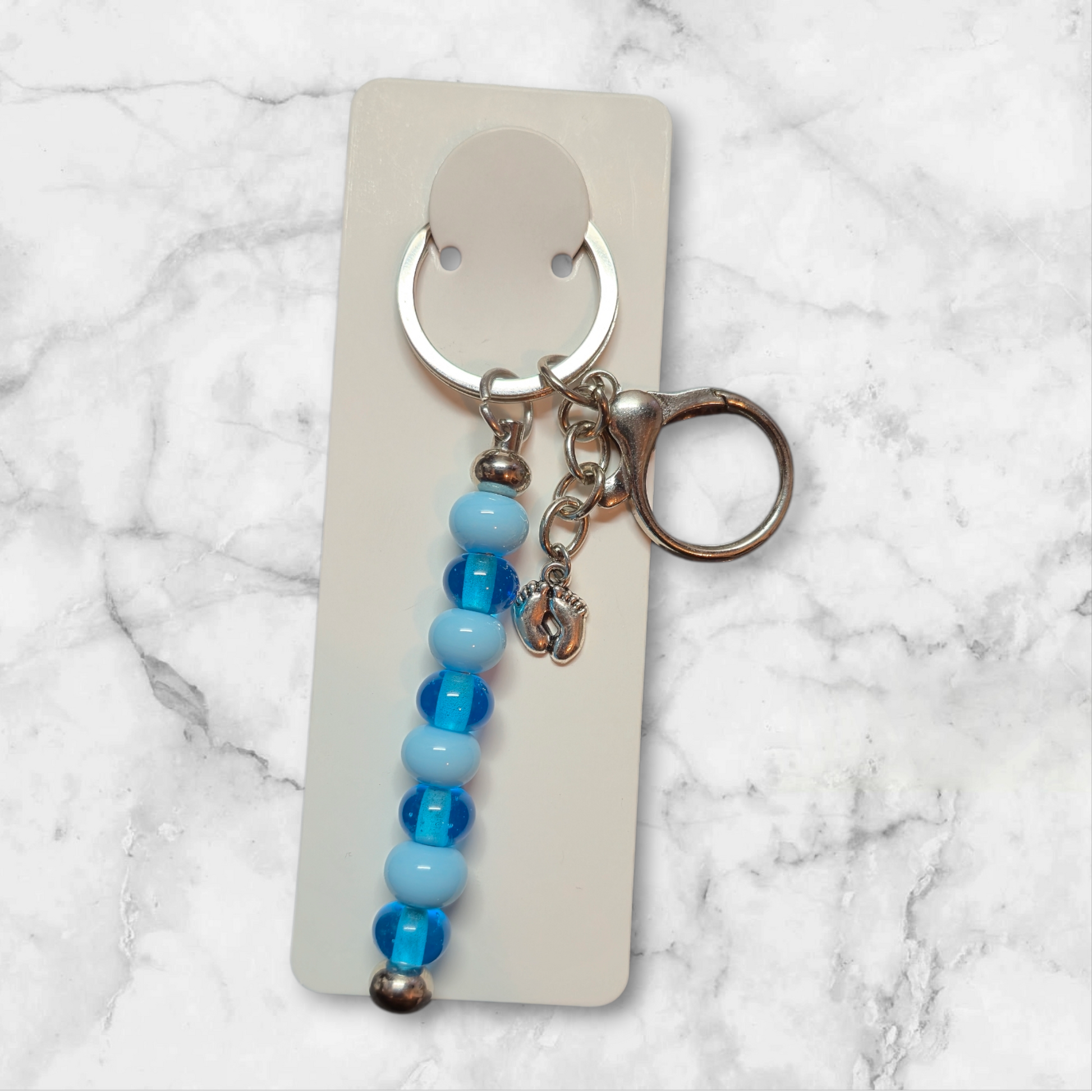 Stab Schlüsselanhänger mit Baby Füßen und Hellblauem Glas Perlen
