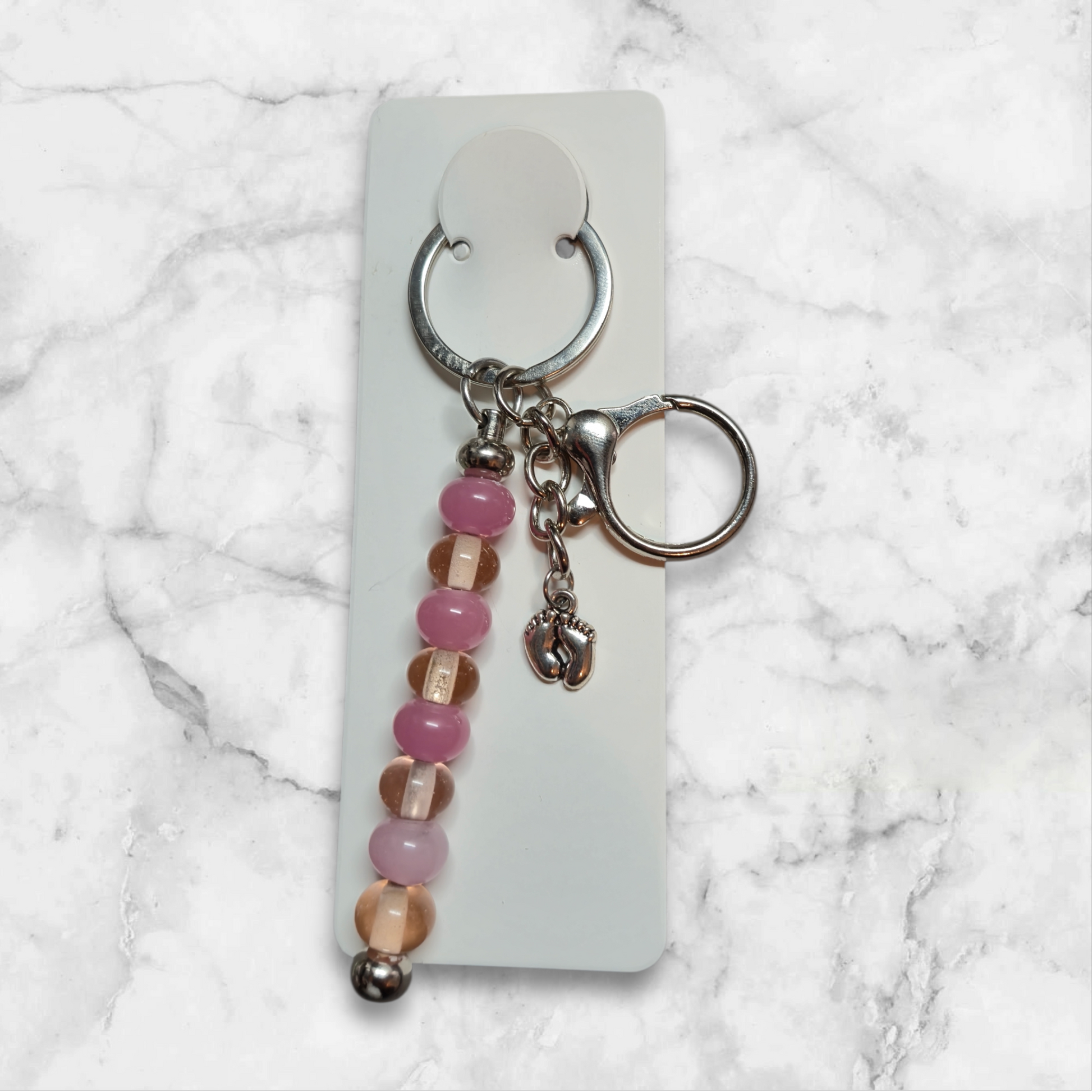 Stab Schlüsselanhänger mit Pinken Glasperlen und Baby füßen