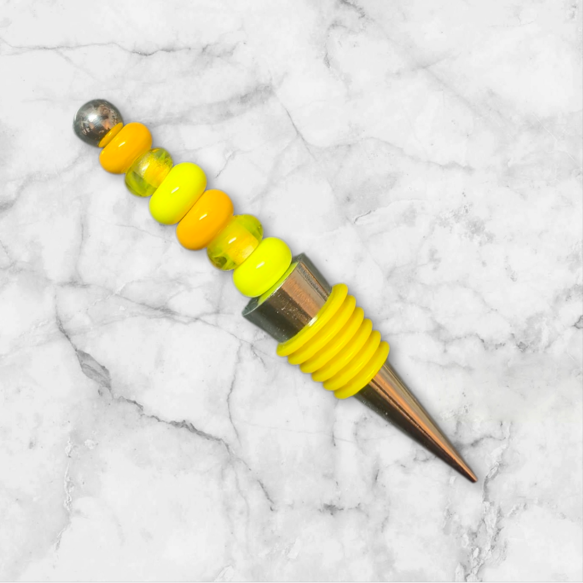 Gelber Weinkorken mit gelben und orangen Glasperlen